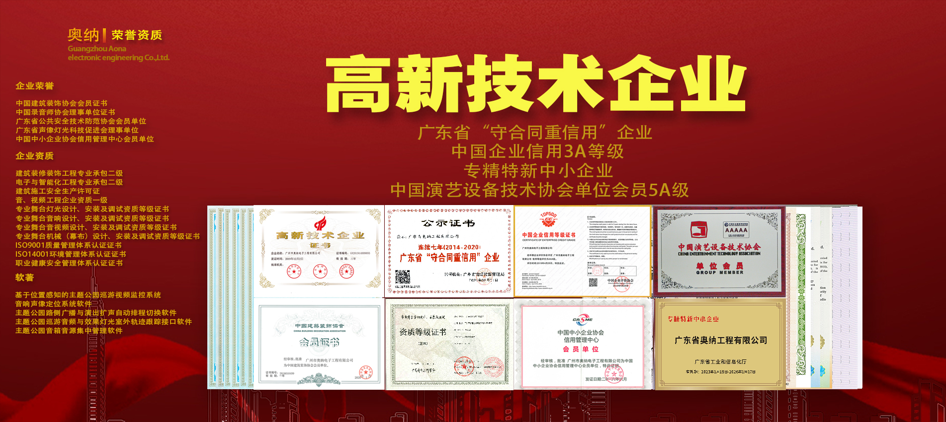 公司現(xiàn)擁有多項資質(zhì)證書,獲得專利和軟著近百項,并先后榮獲百強工程商、優(yōu)秀文旅演藝獎等獎項,在科學化、標準化、規(guī)范化方面深得客戶信賴。公司參與建設(shè)的“華南理工大學國際校區(qū)圖書館”榮獲2022-2023年度中國建設(shè)工程魯班獎。